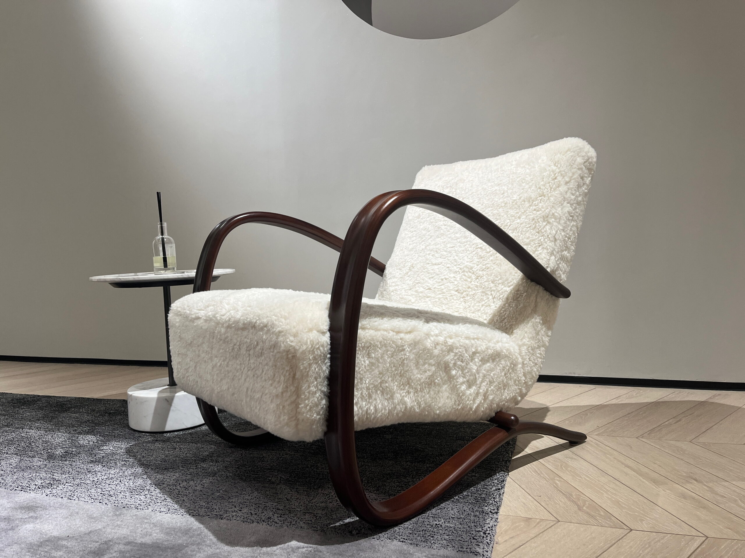 Experience ultimate comfort with this elegant leisure chair, featuring a plush, cream-colored upholstery that invites relaxation. Its gracefully curved wooden armrests and sleek, minimalist design add a touch of sophistication, making it a perfect centerpiece for any stylish living space.