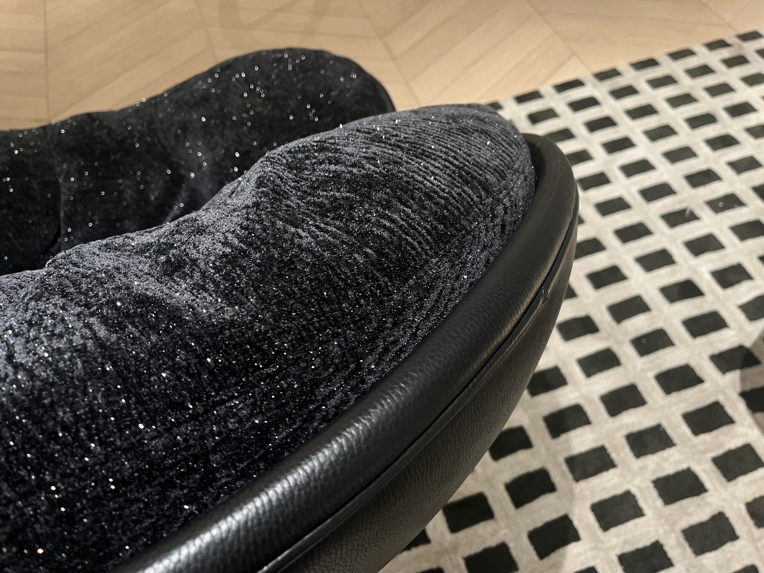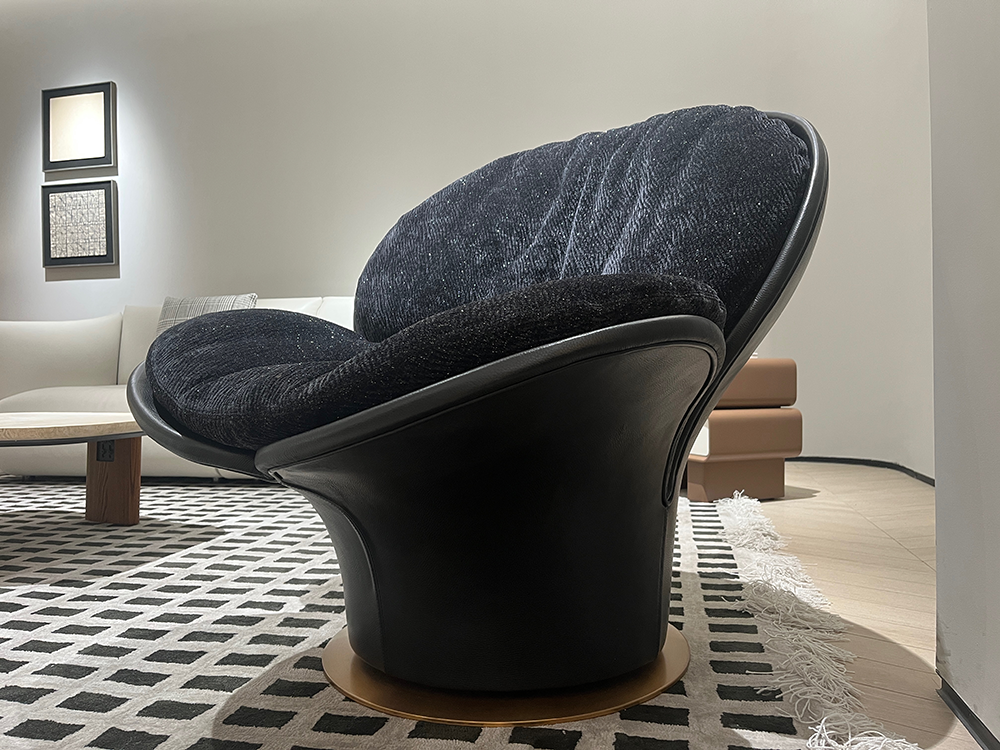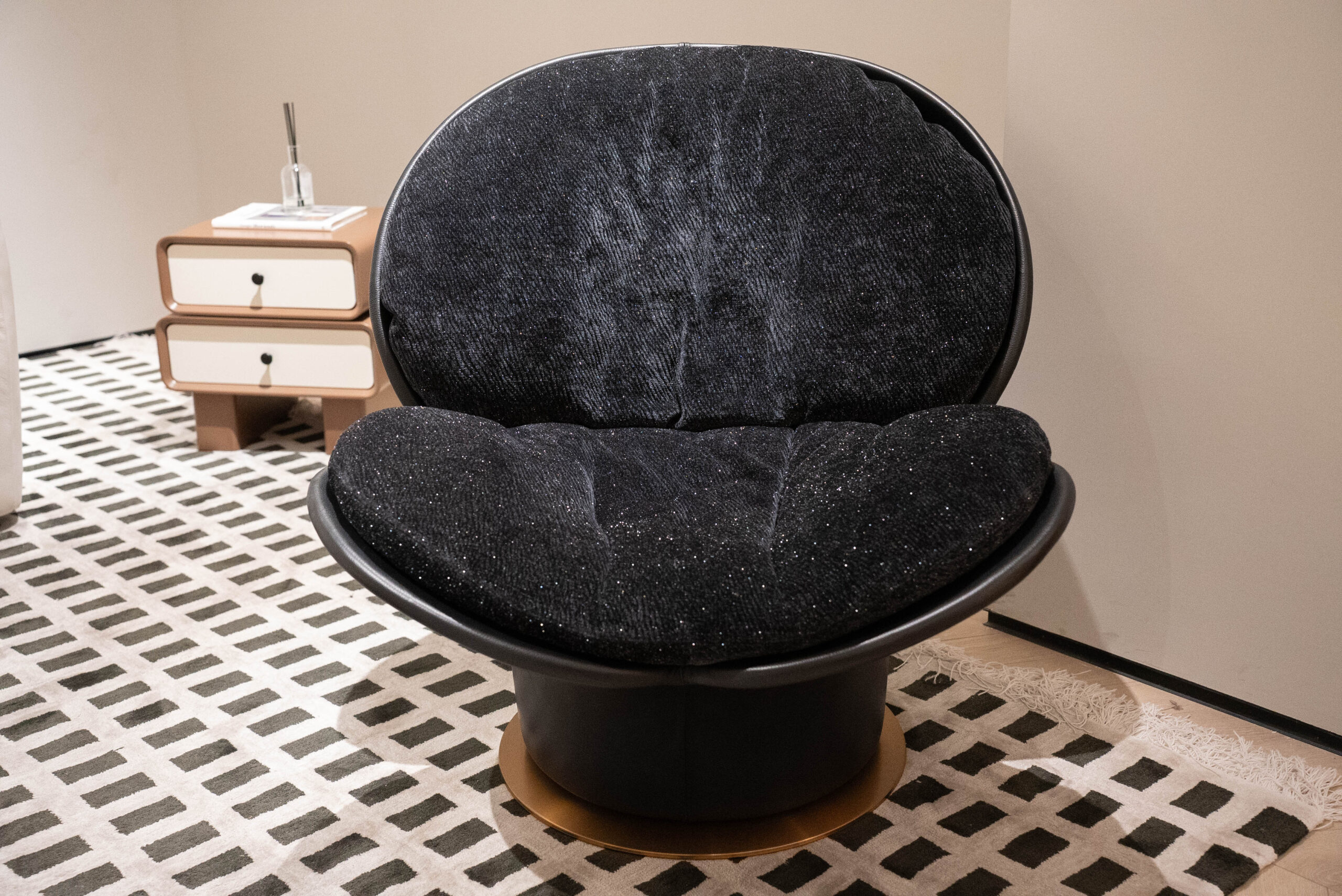 Experience contemporary elegance with this stylish leisure chair, featuring a sleek black base and a plush, textured fabric cushion. Its innovative, curved design offers a perfect blend of comfort and modern aesthetics, making it an ideal statement piece for any sophisticated living space.