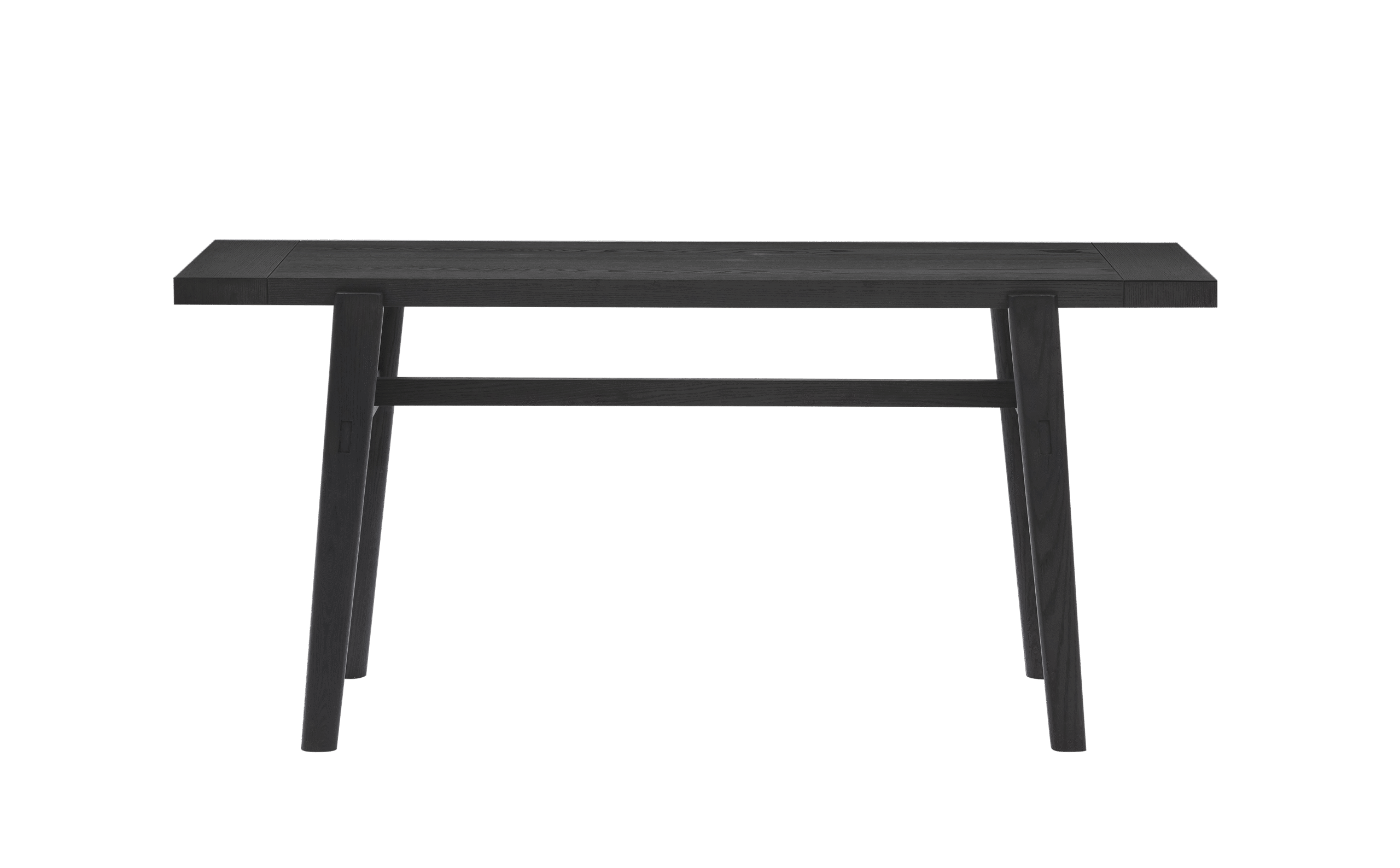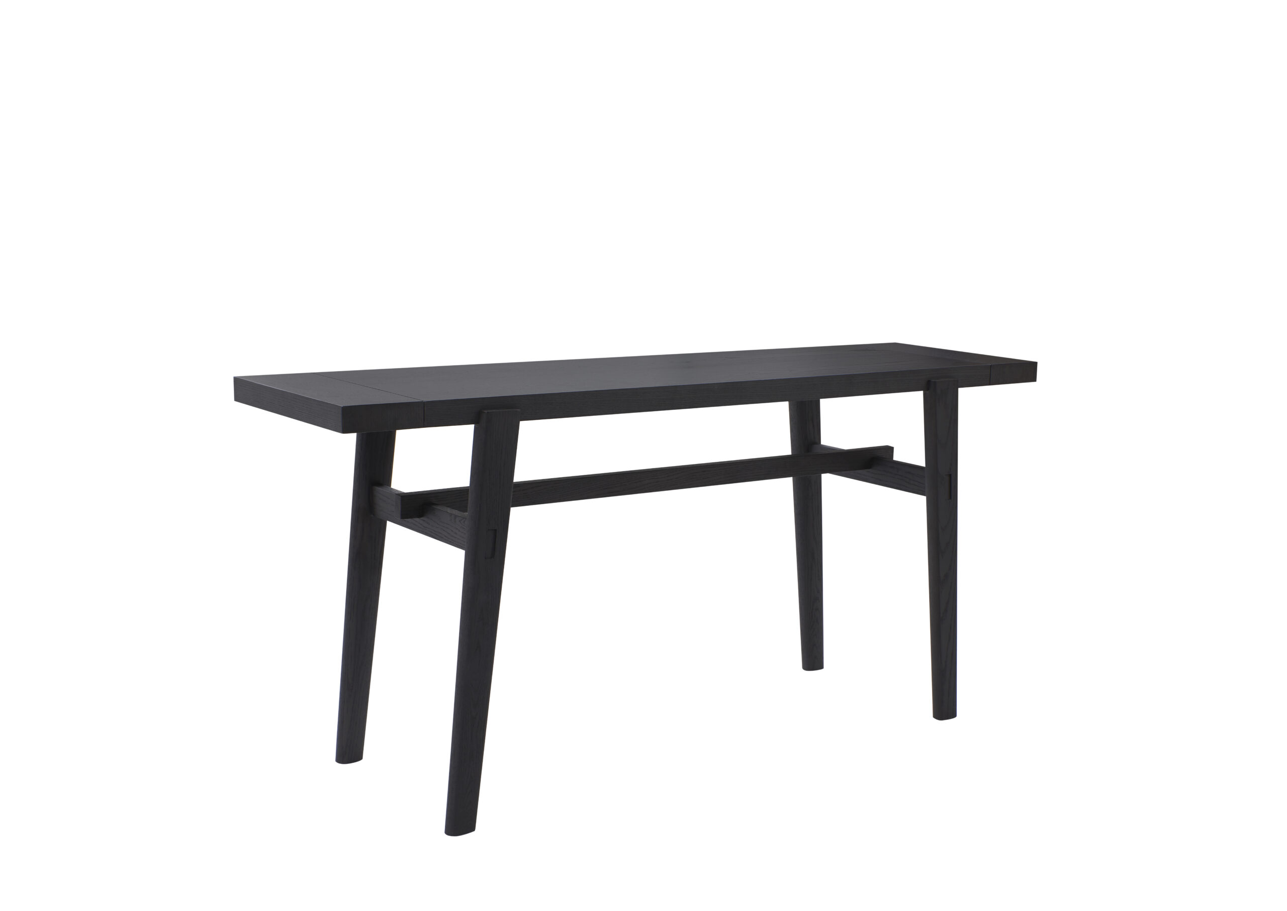Home desk with a flat black wood top, smooth and rectangular for a clean, modern workspace.