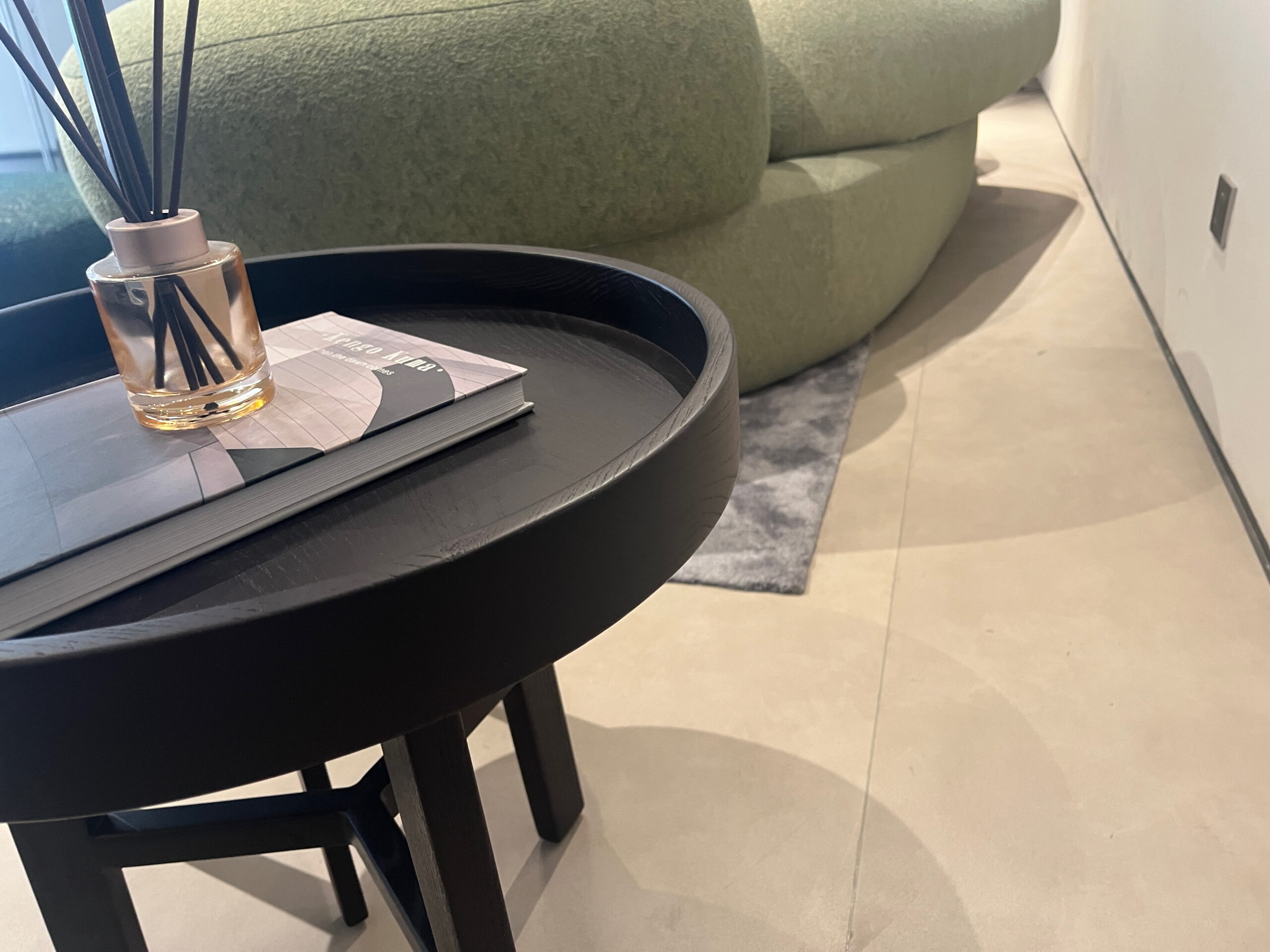 A sleek, modern coffee table made from durable, polished natural stone with a smooth surface and elegant rounded edges, adding a touch of sophistication to your living space.